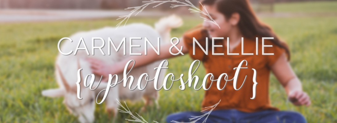 Are you ready for some cuteness today? My youngest sister Carmen asked I could take pictures of her and her goat Nellie. I was happy to do so since goodness, it’s been so long since their last photoshoot! This whole photo session was completed in about 20 minutes, between some friends leaving after a visit and the sun going down. My camera battery died after only a few shots, but we decided to keep going with my phone as the backup camera.